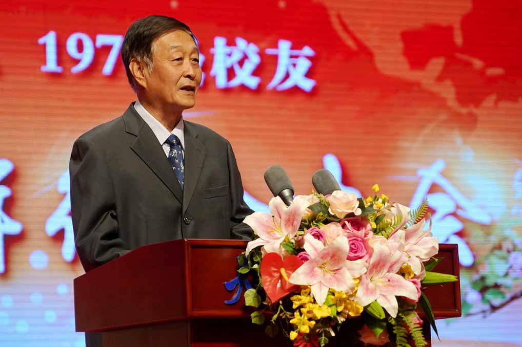 全国五一劳动奖章获得者、天津市教学名师靳世久教授作为77、78级学生的教师代表发言。靳世久深情回忆了40年前指导学生们毕业设计的场景。他说,77、78级学生具有强烈的求知愿望、艰苦奋斗的精神、积极向上的心态和敢于拼搏进取的勇气,他们专注投入、脚踏实地的作风也深深影响了自己。靳世久也衷心感谢校友们“为母校争了光,添了彩”。