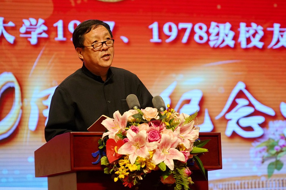 李家俊首先代表全校师生员工热情洋溢地“欢迎校友回家”,并向生活、工作、学习在世界各地的天大校友们,致以最诚挚的问候和最美好的祝福。作为学校78级学生中的一员,他深情回忆了77、78级学子们充满励志与拼搏、执着于自信、梦想与追求的“天大故事”。李家俊还向校友们汇报了学校自改革开放以来,特别是近段时期取得的发展成就。他表示,学校要进一步凝聚师生员工和海内外校友智慧和力量,希望广大校友在为国家、为民族、为社会贡献力量的同时,继续为母校添砖加瓦、献计出力,共同为将母校早日建成中国特色、天大品格的世界一流大学而不懈努力。
