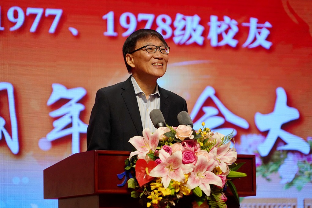 1977级校友代表、天津大学教授张维说:“40年前,伴随着改革开放伟大事业的启程,我们带着希冀和梦想涌向校园,个人命运自此与国家命运一起转折”。张维表示,作为77、78级天大学子,要感谢老师用丰富的知识、魅力的人格和充盈的爱心培育自己的成长。有幸成为天津大学的教师,接过当年老师手中的粉笔,他要把知识和爱心为学生们传递下去。