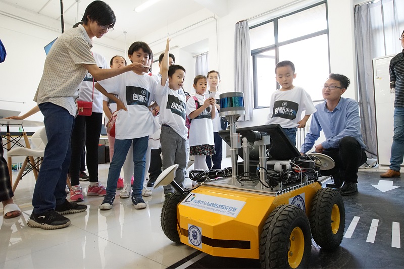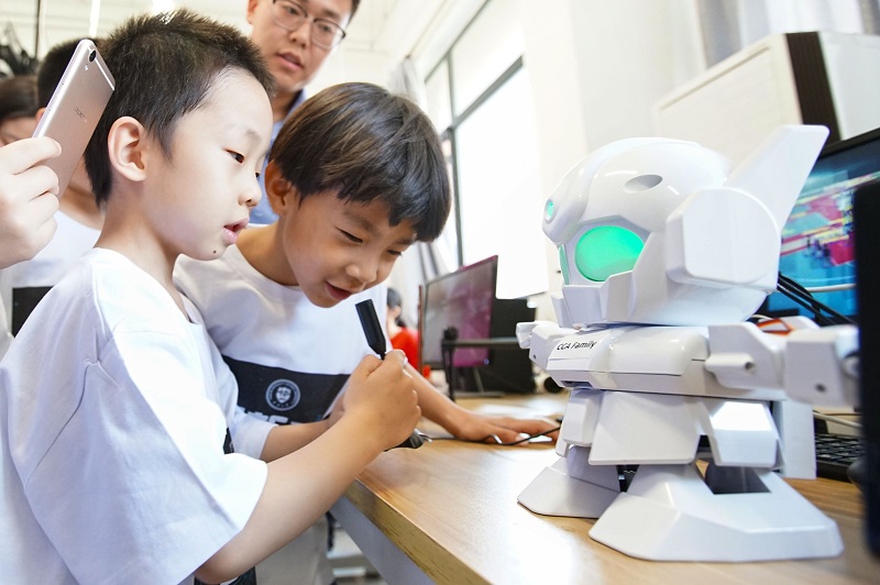 成果,请他们将这些成果报道给更多的小朋友们,并勉励小朋友们说,“你们作为新时代的强国一代,肩负着建设科技全国的使命,人工智能的未来需要你们参与。遥望明天,让我们共同去为实现中国梦而努力。”