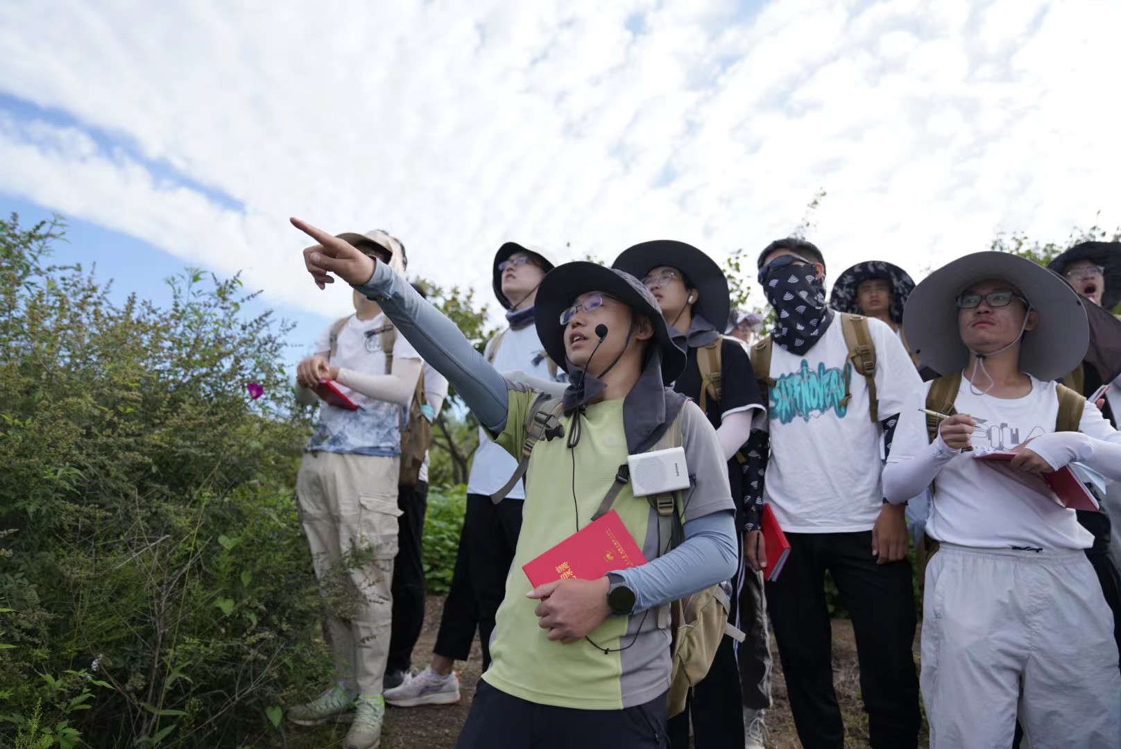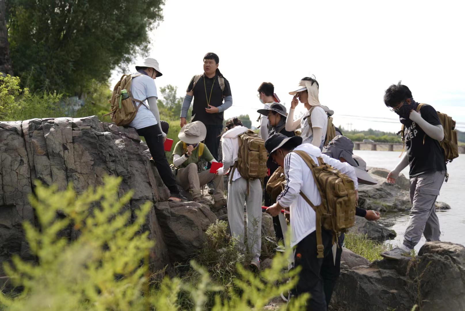 胸前挂着放大镜、背包里放着地质锤,随身要带地质罗盘和地形图,防晒服、户外裤、登山靴、冰袖、墨镜、围巾这是地科生上野外实习课的基本装备。那本火红的“野外记录簿”和好奇心是必选配置。另外如果你有力气,那就把背包扩容,因为可以放下更多的石头。