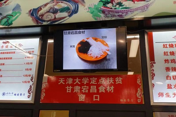 本站讯(记者 赵习钧 焦全颖)近日,在天津大学北洋园校区梅园餐厅的一层,一个写有“天津大学定点扶贫甘肃宕昌食材”的窗口前,排队打饭的同学络绎不绝。清炒木耳、大白菜红烧肉炒粉条、土豆粉条炒回锅肉、宽粉条白菜炖肉......天津大学创新推进“消费扶贫”,从定点扶贫县——甘肃省宕昌县采购贫困户合作社生产的农特产品,让“扶贫菜”走进大学餐厅,覆盖全校11个食堂,近4万名师生。