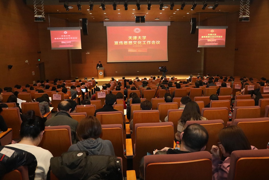 本站讯(记者赵晖 摄影唐蒙)2月28日,天津大学2019年宣传思想文化工作会议在北洋园校区郑东图书馆报告厅召开。会议的主要任务是,深入学习宣传贯彻习近平新时代中国特色社会主义思想和党的十九大精神,贯彻落实习近平总书记关于宣传思想工作的重要思想,加快落实学校第十次党代会的目标任务,交流宣传思想文化工作的工作进展和成效,部署2019年度学校宣传思想文化重点工作。校党委书记李家俊出席会议并讲话。会议由党委副书记雷鸣主持。