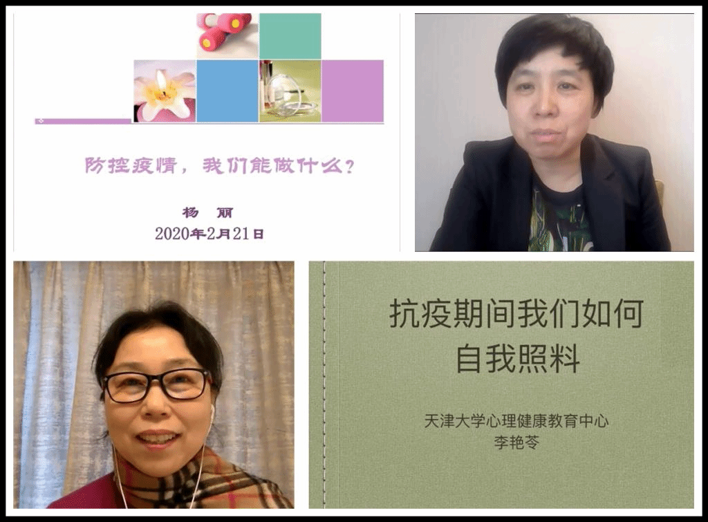 天津大学心理健康教育中心主任杨丽以“防控疫情,我们能做什么?”为题,重点讲解如何认识此次疫情给我们带来的冲击,要正确认识可能会遇到的困难,有针对性地做好学生的心理疏导工作。对于居家学生、留校学生、疫情严重地区学生,要点面结合、分层分类地开展工作,掌握正确的沟通联络、风险评估和危机应对方法和策略,积极建立纵横交错的心理支持网络,调动各方力量群策群力,共克时艰。