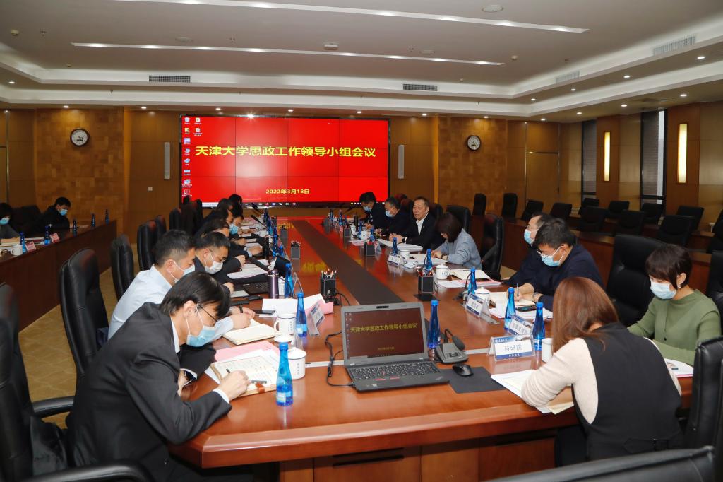 本站讯(摄影 郭程)3月18日下午,校党委书记杨贤金在北洋园校区主持召开天津大学思想政治工作领导小组2022年第一次工作会议,校领导雷鸣、曲凯、郑刚、贾启君出席会议。会议认真学习了党的十八大以来习近平总书记对高等教育的重要论述、重要指示批示精神;传达学习《教育部思想政治工作司2022年工作要点》;听取“思想政治理论课教学质量年”建设、课程思政建设、“一站式”学生社区综合管理模式建设以及思政工作评估督导体系建设四项重点工作的进展情况汇报,研讨下一步工作。