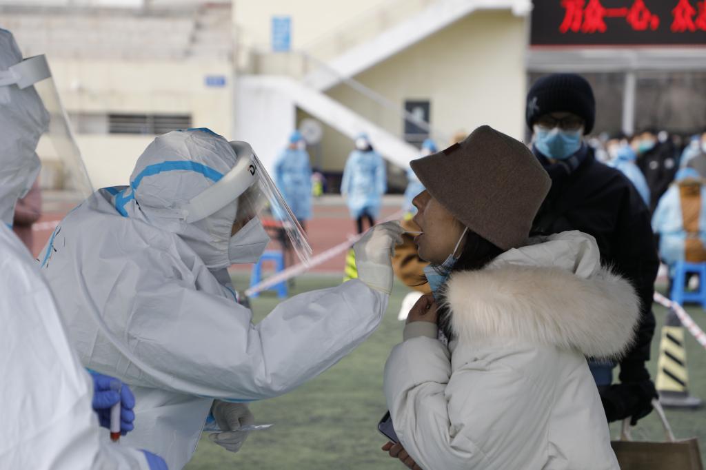 志愿者在核酸检测现场引导组织
