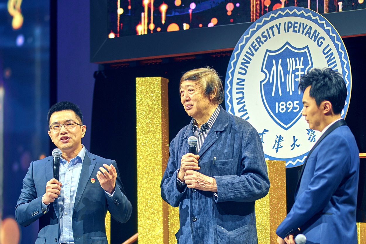 “我是跨时代的人,是共和国的同龄人,我听过解放天津的炮声,到现在还清晰地留在记忆力。我的文学创作与改革开放同步。我和祖国、人民、时代共命运。”在歌会现场,冯骥才教授侃侃而谈。天大师生优秀代表无疑成为了本场歌会最耀眼的“明星”:当代著名作家、画家、文化学者,天津大学教授冯骥才;讲述天大品格和校歌故事的校史文化专家王杰教授;第23届"中国青年五四奖章"入围人选齐俊桐教授;来自天津大学生物合成团队、深海机器人“海燕”团队、神经工程“天宫二号”脑机对接团队、大型地震工程模拟研究设施团队、港珠澳大桥设计团队、C919大型客机座舱环境控制系统团队、助力”嫦娥探月“的空间力学团队、“中国天眼”主动反射面液压促动控制器研发团队代表等天大“追梦人”走上舞台,寄语青年一代,畅谈五四精神,抒发家国情怀,让现场学子们接受成长洗礼,收获榜样的力量。