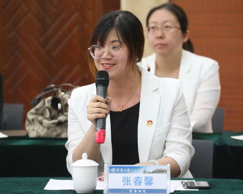 天津大学第十三期太雷班学员,机械工程学院研究生焦钰结合自己在广西来宾基层实习时参与“脱贫攻坚”工作的经历讲述了对五四精神的理解。她认为青年一代应该多去实地调研,“到人民群众中去,到新时代新天地中去”,从内心提高自身的国家自豪感和民族认同感,无惧前途艰辛,为实现远大理想而砥砺奋斗。