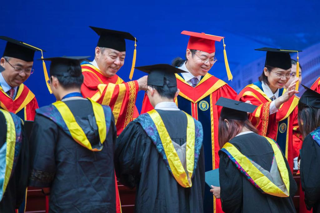 “向全体毕业生表示热烈祝贺,向今天回家的年轻校友们表示诚挚的欢迎,向悉心指导你们的老师和关心支持你们的家人表示衷心的感谢!”中国工程院院士、天津大学校长金东寒向毕业生致以热情洋溢的祝福,希望他们能够涵养“天大的气韵”——古与今交融的大学之气、刚与柔交错的大学之灵、动与静交织的大学之韵。金东寒嘱托全体毕业生离开校园后要继续做好一名“天大人”:做天大人,要有天大志,立志做对祖国和人民有用的人,只要心怀祖国和人民,就可以成为所扎根热土上的先锋、所服务人民心中的英雄;做天大人,要有天大情,懂得感恩的真谛并能知恩图报,要感谢每一段成功与失败的经历,练就百折不挠的韧劲,做一个用自己的光芒去照亮他人前路的“发光者”;做天大人,要有天大勇,“国家对你们有期待,学校对你们有责任,社会对你们有要求。日后,在风雨来临之际,希望你们不害怕、不退缩,要有迎难而上的决心,更要有为他人遮风挡雨的勇气!”