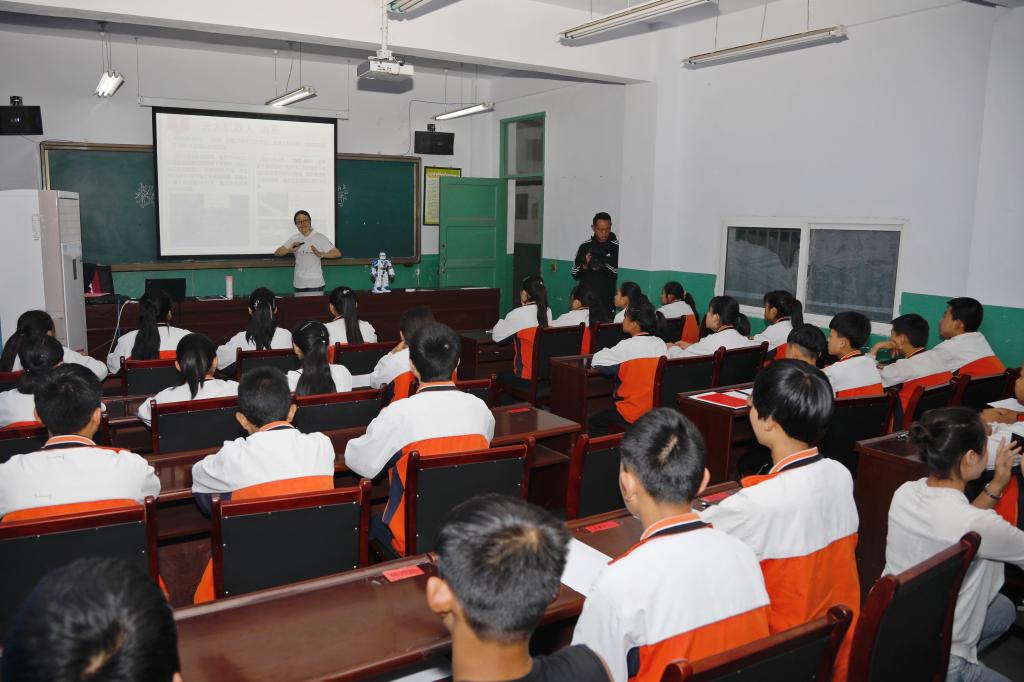 12日上午,金东寒一行来到宕昌县官亭镇九年制学校,看望正在这里开展科普教育宣讲的工会青年教师团。今年暑期,学校工会派出两队优秀教师赴宕昌15所九年一贯制学校开展科普宣讲工作。在宣讲课堂,金东寒与同学们一起观看了机械学院邢元老师展示机器人的功能与应用。金东寒与孩子们分享了自己儿时的科学梦、报国梦,鼓励大家积极培养对科学的浓厚兴趣,涵养家国情怀,努力成长为建设国家、服务社会的栋梁之材。