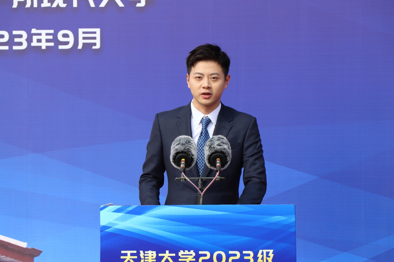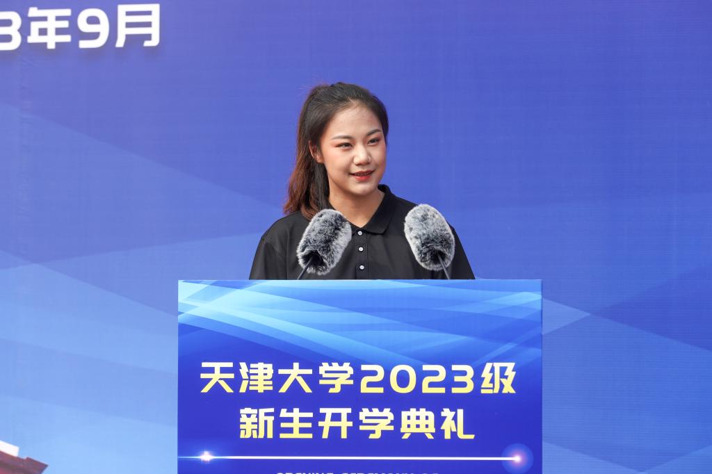 “五年前我有幸成为一名建筑学院本科生,今天我以研究生新生身份再次站在这里,与母校再续前缘!”建筑学院硕士邓靖凡作为研究生新生代表用三句诗词与同学们共勉:“咬定青山不放松”“长风破浪会有时”“愿得此身长报国”——“未来的日子里,我们更要让‘天大品格’铭刻于心,让青春之花绽放在祖国最需要的地方!”
