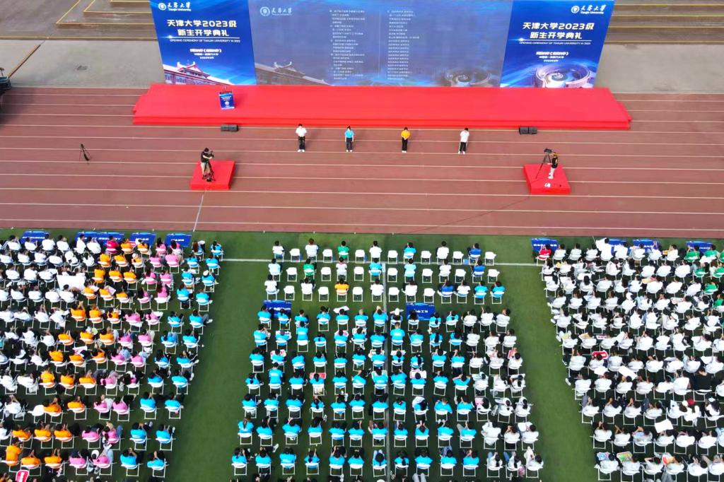 本站讯(记者焦德芳 摄影刘延俊、梁绍楠)9月5日上午,天津大学2023级新生开学典礼在双校区体育场同时举行。12700余名级本科生、研究生新生正式开启大学生活新篇章。校领导、各学院学部领导、教师代表、辅导员及机关部处负责同志出席开学典礼。典礼由天津大学党委副书记韩庆华主持。