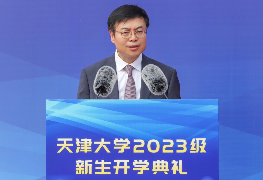 “我谨代表全校师生员工,向考取天大的青年学子表示诚挚的祝贺和热烈的欢迎!”天津大学校长金东寒热情洋溢地向“新天大人”致意。他从双校区两场精彩的迎新展览引出学校悠久的历史,勉励师生望前驱之英华卓荦,不断继承和发扬“天大品格”。“同学们,是什么如此有力量,可以跨越时间,让个人实现理想,让天大弦歌不辍——那就是读书。”金东寒围绕“读书”话题向新同学展开启迪和勉励——“请大家思考一个问题:你们来天大,读书为何?”