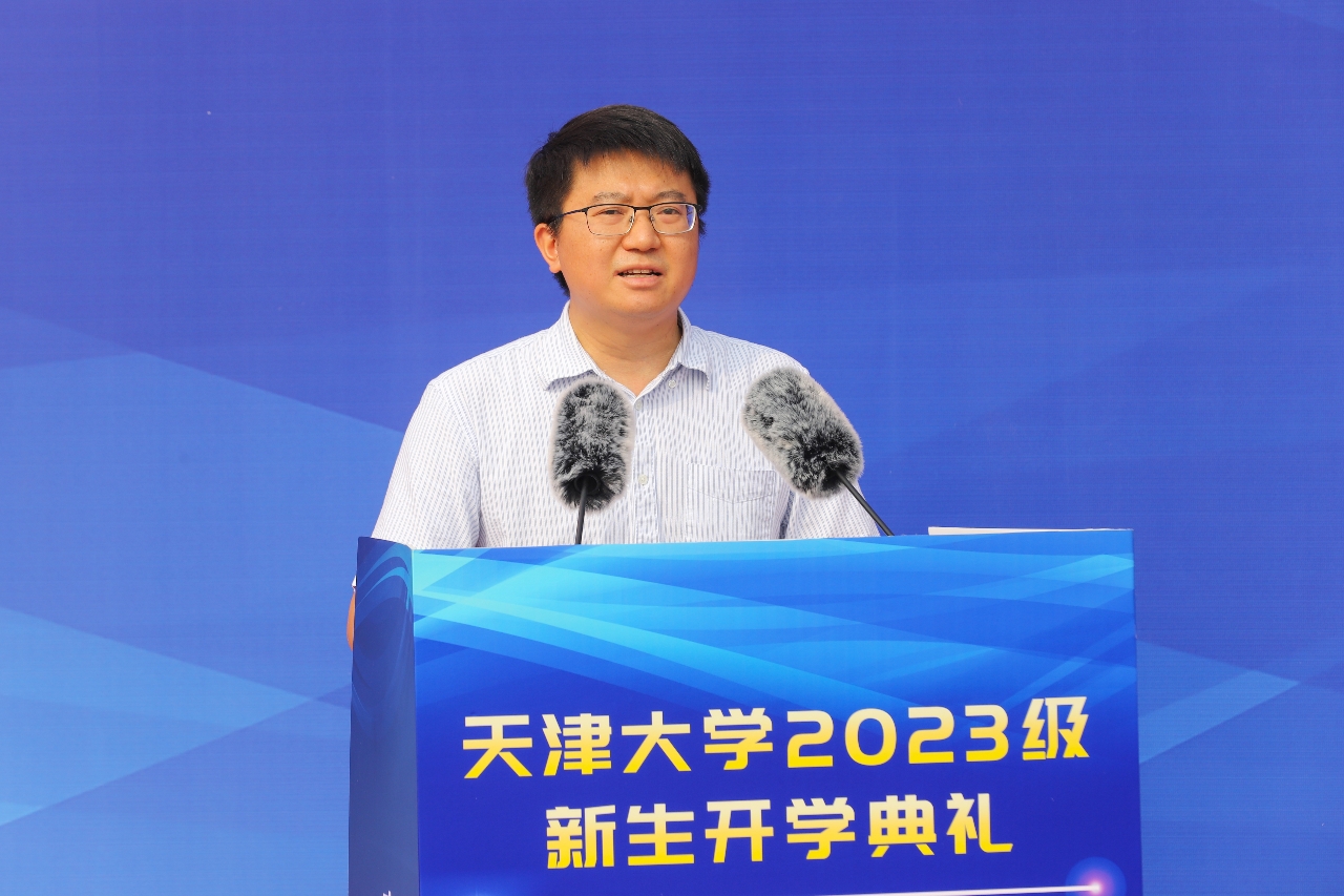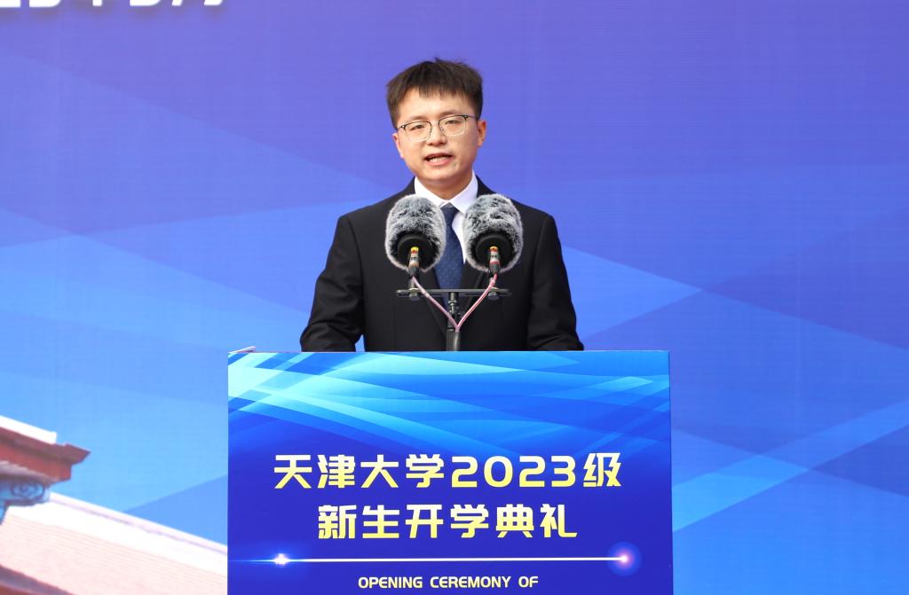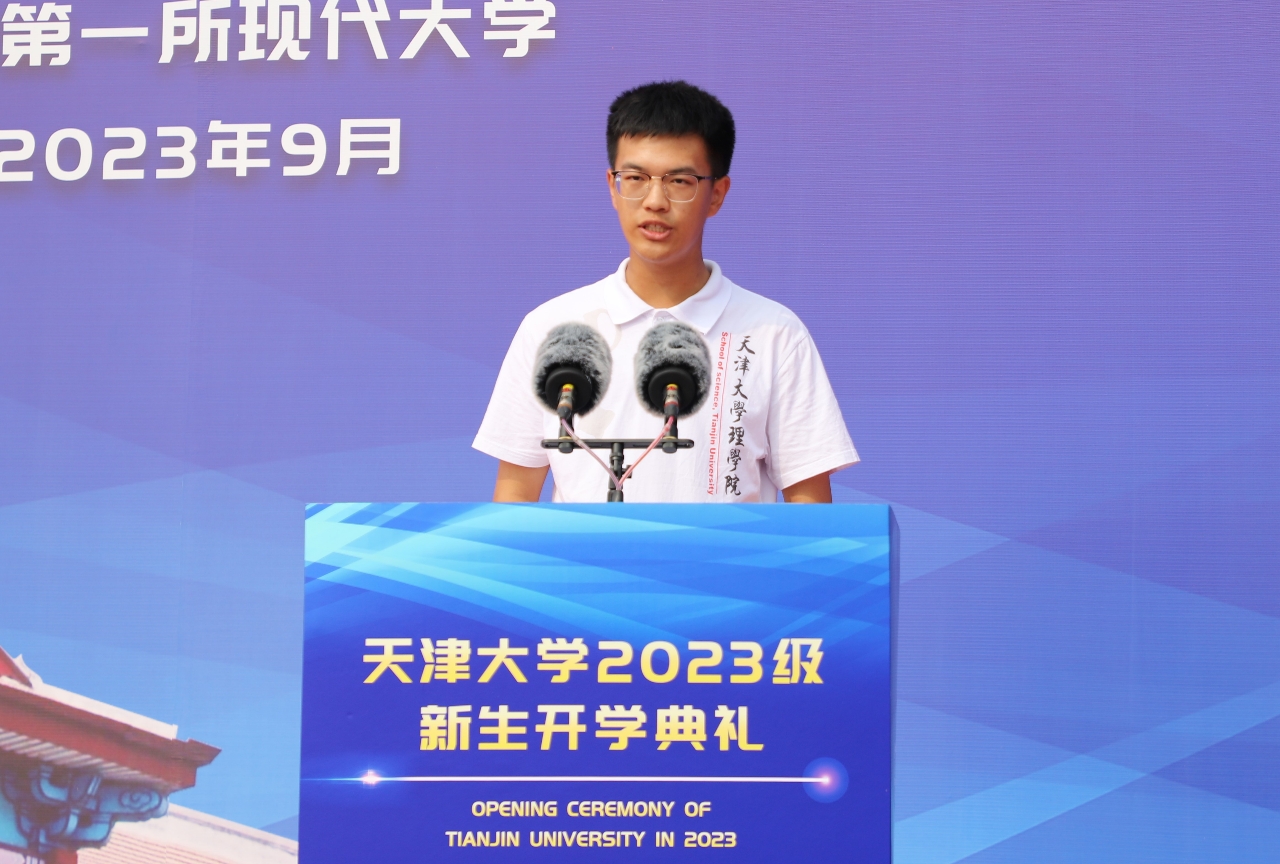 “今年的天大录取通知书以小行星为主题,而我的高中母校同样命名了一颗小行星,与‘天津大学星’相映生辉——我的升学之旅是一颗星到达另一颗星的旅程。”理学院应用物理专业2023级本科生吴文宇作为新生代表发言,“作为强基计划学生,我们肩负着国家基础学科振兴的使命。”吴文宇抒怀了自己心中的“顶天立地天大人”:顶天立地的天大人,要有“精诚所至,金石为开”的恒心,要有“明知山有虎,偏向虎山行”的决心,更要有“天下兴亡,匹夫有责”的责任心。