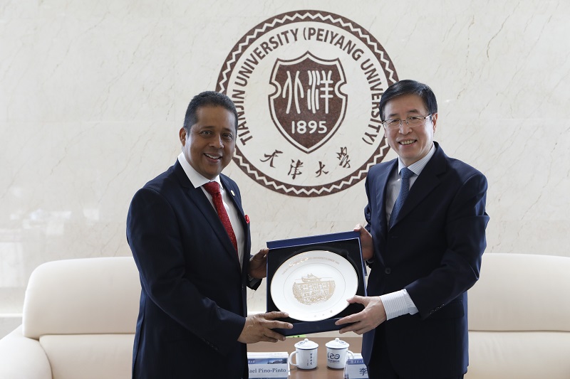 元英进为Rafael Pino-Pinto一行简要介绍了天津的历史文化风貌及各学院的基本情况。他表示,希望能以此次会面为桥梁,打开双方合作的新局面。国教学院院长陈志华介绍了巴拿马学生在天津大学的学习、生活情况,希望能够招收更多巴拿马留学生。