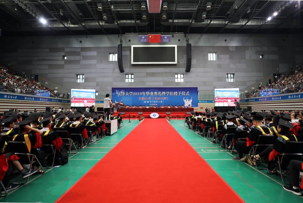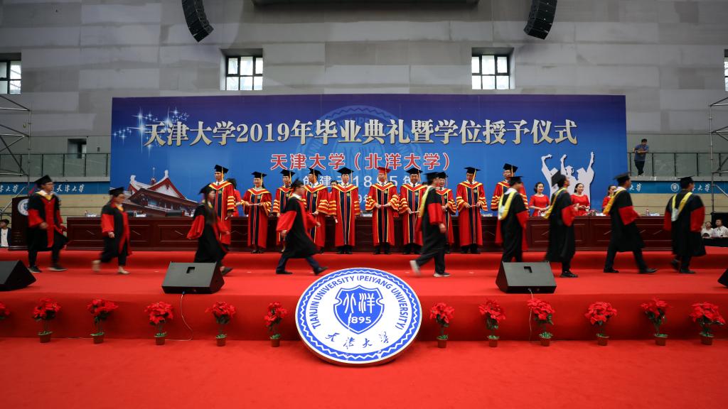 本站讯(记者张华 摄影唐蒙、刘延俊)2019年6月28日,天津大学2019届夏季研究生毕业典礼及学位授予仪式在天津大学卫津路校区新体育馆举行。天津大学367名博士研究生和1994名硕士研究生喜获学位。参加毕业典礼的校领导有:校党委书记李家俊,中国工程院院士、校长金东寒,校党委副书记、纪委书记孙广平,副校长胡文平,校党委副书记雷鸣,副校长张凤宝,校党委副书记赵美蓉,党委常委、总会计师古瑶,校长助理、天津大学佐治亚理工深圳学院中方主任肖松山,校党委常委、宣传部长贾启君。杰出校友代表、中国航天员新利18网址登录