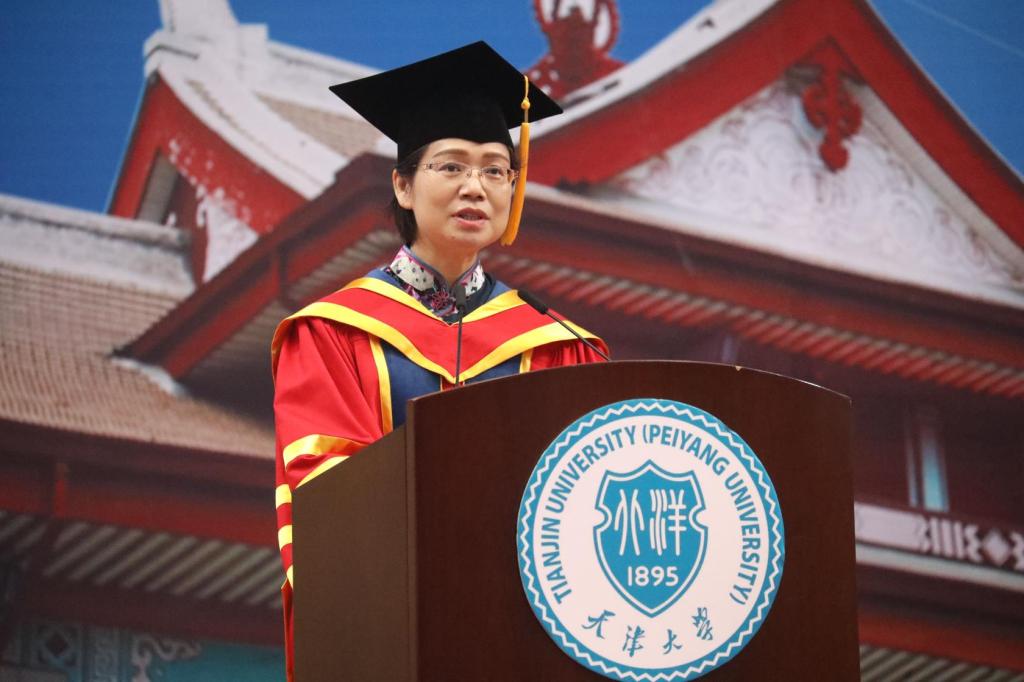 理学院2016级博士研究生王聪作为毕业生代表发言。她分享了自己在天大9年的求学之路和所得所悟,“能在最美好的年纪与百年学府共同成长,内心满是幸运与荣耀。”在发言最后她畅想到,“新时代的接力棒已传递到我们青年一代的手中。我们决不负时代使命,在这一棒中,跑出一个好成绩。”