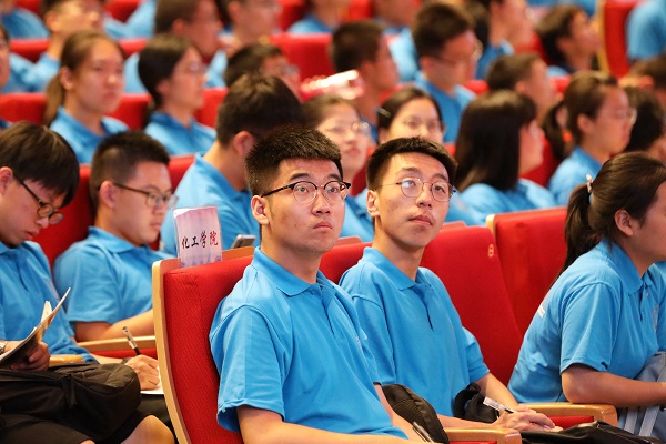 学习和自身培养上,以兴学强国为使命,学会求知,学会做事,学会做人,学会共处,实事求是。”化工学院2019级新生杨逸晨表示。