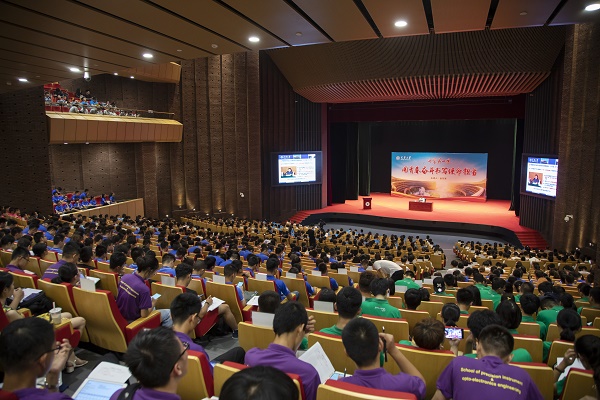 本站讯 (记者 赵习钧 赵瑾琳 摄影 唐蒙 刘延俊)9月3日,天津大学北洋园校区求实会堂座无虚席, 1400余名2019级新生现场聆听了金东寒校长讲授的开学第一课——“用青春奋斗书写使命担当”。金东寒从伟大的发展历程、大学的时代使命、青年的责任担当三个方面,回顾了中国共产党带领全国人民走向民族复兴光明前景的伟大历程,阐述了当代大学生的时代使命和责任担当。