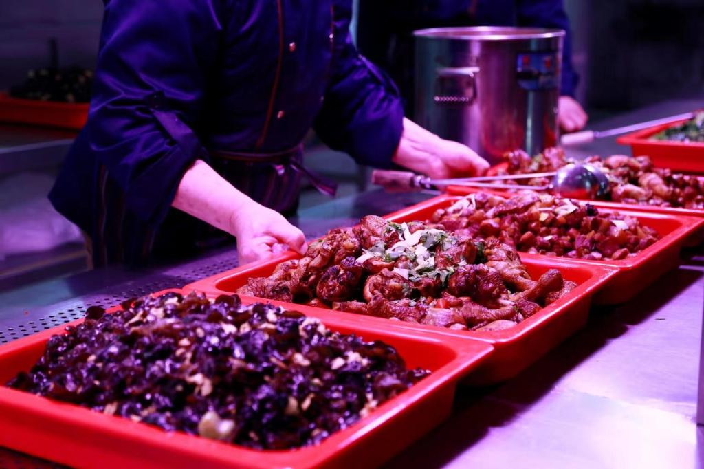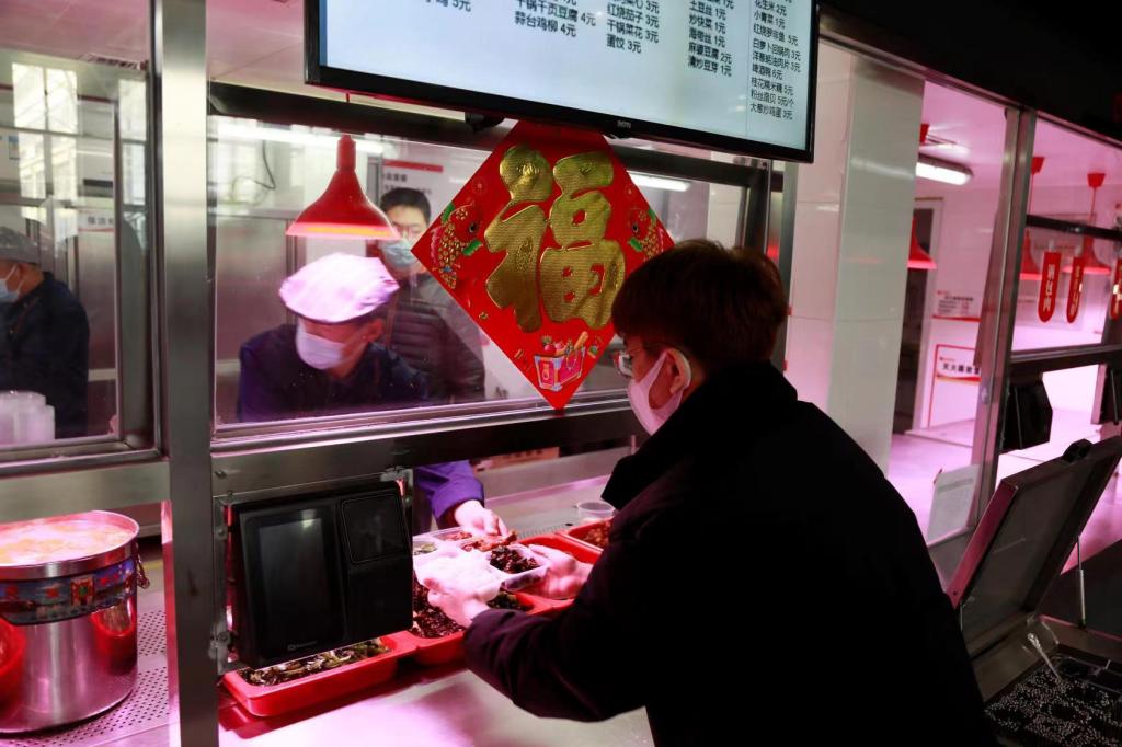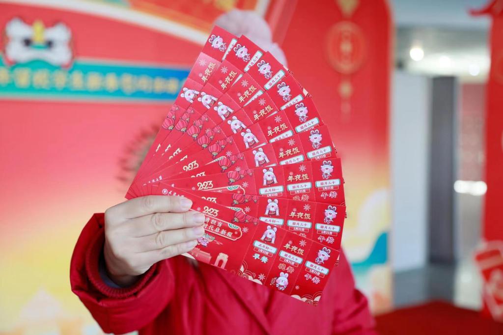 过年了,学校还请留校过年的学生吃大餐。学校为春节留校学生免费提供1月21日(除夕)中餐、晚餐和1月22日(初一)早餐,学生凭餐券用餐。热气腾腾的饺子、入口即化的红烧肉、香飘四溢的大盘鸡……学校食堂让留校学生们尽情享受美食,感受家的味道、校的温暖!“谢谢大厨们给我们准备了这么多好吃的,给厨房大师傅拜年,谢谢师傅们照顾我们的胃,恭祝兔年吉祥。”天大的学生们都有一颗感恩的心,纷纷给师傅们拜年。