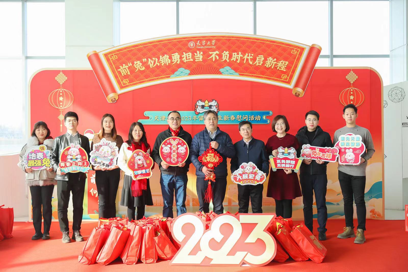 本站讯(记者赵晖 通讯员马天明 摄影丁宇 郭程)大红福字贴起来,拱手拜年祝平安。1月21日,正值农历除夕,天津大学在北洋园校区大通学生活动中心和卫津路校区大学生活动中心开展2023年留校学生新春慰问活动。天津大学副校长明东、党委副书记韩庆华与同学们欢聚一堂、共迎新春,共话未来。