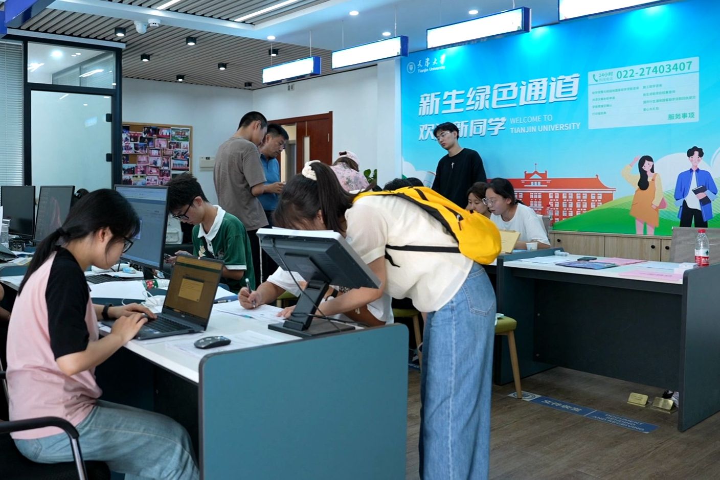 迎新期间,天津大学也在后勤保障上不断推出暖心服务:双校区食堂全天开放,免费提供饮用水、绿豆汤和酸奶,方便学生“开学第一餐”和家长休息;校园店铺也捧出了免费使用的天大地图、小推车、饮用水等迎接新生和家长到来;校园内设置多处迎新服务台,提供指引和咨询服务,学校还配备专用车辆协助新生把大件行李运到宿舍。法学院新生阿热娜尔一个人从新疆来校报到:“从进校门到报道点,再到去宿舍,这一路上都有热情的志愿者,全程都很方便,学校安排非常周到非常人性化,让我体验到了家的温暖!”