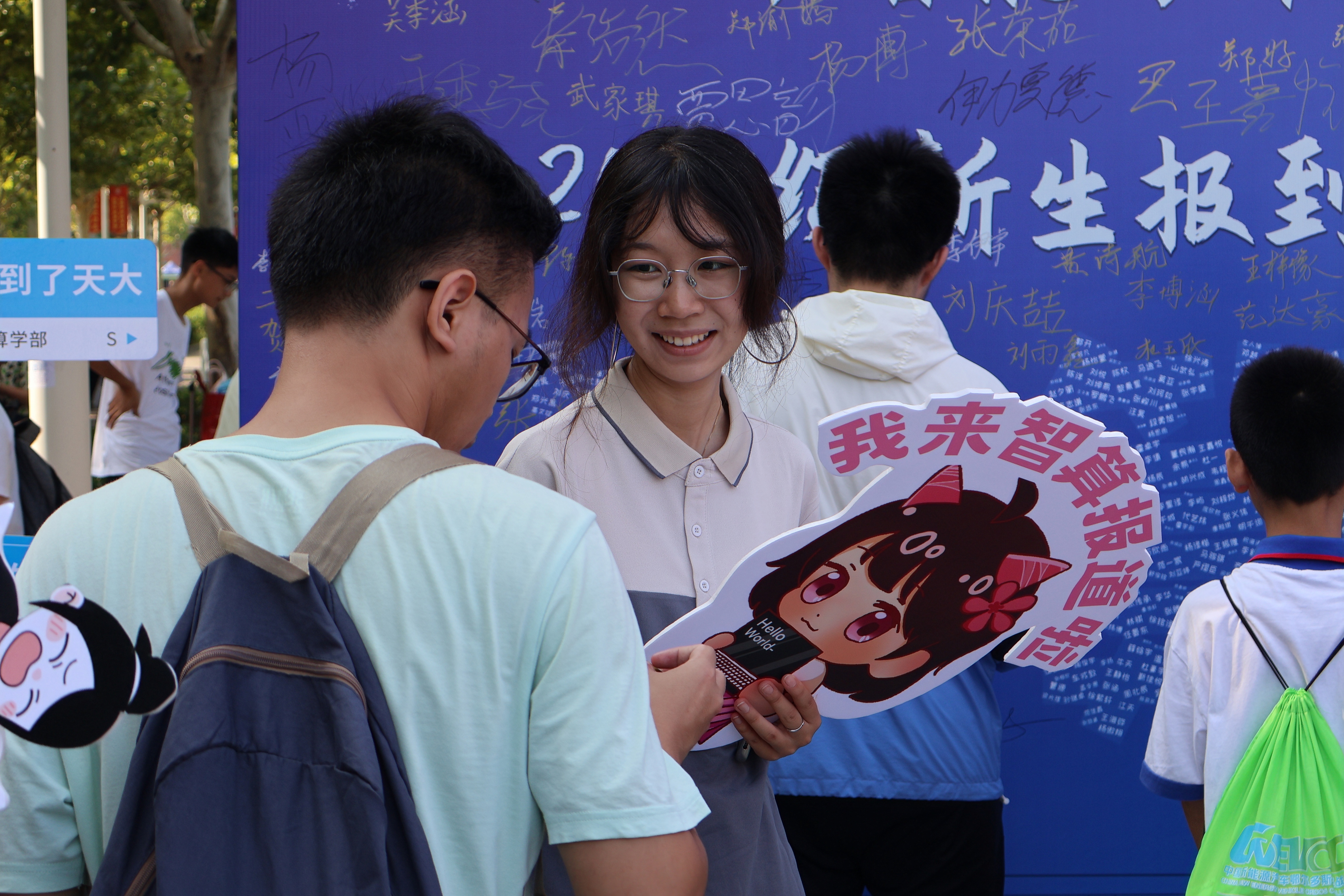 记者在双校区广场看到,各学院学部纷纷以诚意满满、惊喜满满的“花式迎新”助力新生开启大学生活:智算学部迎新现场“科技与创意齐飞”,新生们好奇地围着学部自主设计的“天问”大模型,提出各类问题并期待奇思妙想的回答;北洋广场上两个高大的人形立牌格外显眼。那是精仪学院为新生精心设计的吉祥物“精小仪”和“光小电”——“精小仪”用双手比出“2”“4”的模样,“光小电”手捧彩色的三棱镜,祝福每一位2024级新生拥有丰富多彩的校园生活;化工学院将院史融入新生盲盒,还精心准备了感恩卡片和结对子贺卡,新生将感恩卡片一分为二,深情地表示“一半我要送给父母,感恩父持母暖,助我学成,一半留下勉励自己”;打开结对子贺卡的同学则表示“期待与优秀的学长学姐们搭建沟通桥梁。”海洋学院68位大一新生的照片布满迎新板,宛如一幅生动的画卷,巨大的签名板犹如海中的灯塔,被称为"小海马"的新生们纷纷在签名板上留下姓名,寓意在海洋学院开始独一无二的“天大航迹”;在机械学院迎新处,一张张写满了希望与期待的新语卡吸引了人群的目光。“集章、票根还有应援墙,真是打卡必备!”新生们纷纷驻足领取新语卡,与亲朋好友一同写下祝福、寄语未来;建工学院在太雷广场迎新站和学院门前精心设计了合影打卡墙,新生和家人在墙前拍下踏入大学校门的第一张照片,回首来路“感谢家长的养育与陪伴”,向未来宣告“国家发展民族腾飞的伟业中将有我们新天大人的身影”;建筑学院迎新点位摆放着一块块拼图,每一块拼图都承载着不同的色彩,新生们拿起笔在拼图上写下自己对未来的愿望,而所有拼图拼接在一起时就呈现出建筑学院系馆的模样,寓意着“建筑之梦由此启航”;材料学院专门设立特色党员先锋岗,邀请优秀本科生党员与专业教师现场为学生与家长提供专业学习、学科前沿、就业工作等重点关注问题的答疑解惑;“天大新医科,健康新未来”——由药学院牵头组织的医学试验班将五大专业以卡通立牌展现出来,他们还为新生精心设计了带有“蛇杖”元素的院衫,彰显出医学部全体师生为医药事业奉献的精神;环境学院邀请师友导师、班主任、辅导员、学长学姐在一张张天大明信片上亲笔写下对新生的第一份祝福与嘱托,让每一位新生在迎新现场抽取"祝福盲盒”;理学院不仅为每个新生准备了书包扣、手环、胸针等特色文创,还把院史墙“搬”到了迎新现场。2024级应用物理学新生陈驿远说:“看着院史墙上理科人一代代传承至今,我感触很深。我的爸爸妈妈也是天大人,今年我通过强基计划考入天大,我想这也是一种传承,希望以后在国家基础学科发展的道路上贡献自己的力量!”