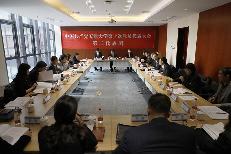 本站讯(通讯员 闻雪昆 摄影 陈晓金)12月27日下午,天津大学第十次党代会进入各代表团分组讨论阶段。第二代表团召开会议,围绕党委工作报告和纪委工作报告展开了热烈讨论。钟登华同志参加会议并讲话,来自精仪学院、数学学院和建筑学院的22名党员代表参加了讨论,会议由团长王海龙主持。