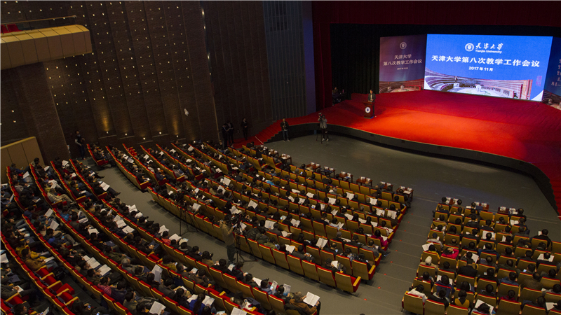 2017年11月18日9时,天津大学第八次教学工作会议在北洋园校区求实会堂开幕。教育部高等教育司副司长王启明、天津市教委副主任白海力出席会议并致辞。天津大学党委书记李家俊主持会议,校长钟登华发表重要讲话,副校长王树新代表学校作教学工作报告。张春霆院士、王静康院士、叶声华院士、陈予恕院士,以及全体校领导班子成员;国务院学位委员会学科评议组成员,教育部教学指导委员会成员,专业学位研究生教育指导委员会成员;校学位委员会委员,校教学督导委员会成员;机关部处(室)、直属单位主要负责人;学院(部)全体中层干部、系(所、中心)负责人、专业负责人、教务员;民主党派及无党派人士代表;教职工代表、学生代表;天津大学对口支援高校、部分中学校长等特邀代表千余人参加会议。