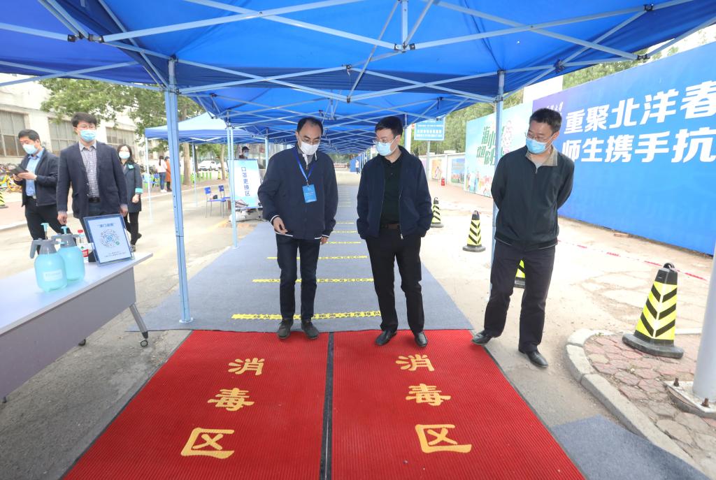 7日上午,金东寒来到天津大学卫津路校区北门,亲切慰问学校保卫处和教职工志愿者组成的校门值守队伍。根据学校安排,自驾或其他方式非经由“三站一场”返回卫津路校区的学生统一由北门“绿色通道”入校。金东寒仔细询问了学生入校流程和返校情况,要求大家有力有序做好返校学生身份核查和体温检测,全力守好校园“第一道关口”,同时还要注重自我防护,确保自身安全。当天下午,金东寒来到位于天津西站前广场的天津大学返校学生接站服务点位,慰问了由学工教师、机关志愿者和校医院医护人员组成的接站工作队伍。金东寒与大家亲切交谈,详细询问了接站流程、防疫措施、休息就餐、个人防护等情况,对我校工作人员坚守岗位、担当作为的敬业精神和奉献精神给予了充分肯定。