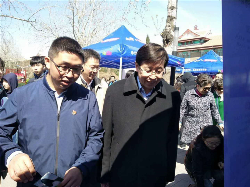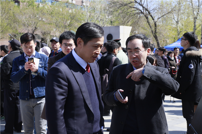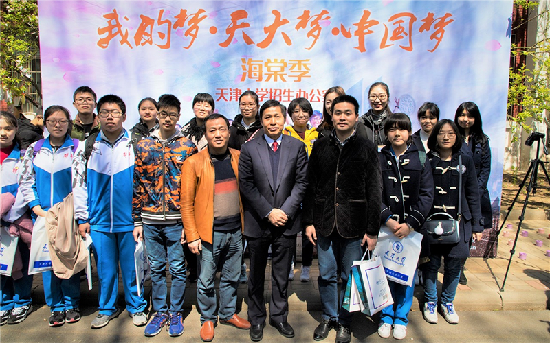 上午,天津大学校领导前往活动现场,与游人、师生校友、中学生们亲切交谈并合影留念。