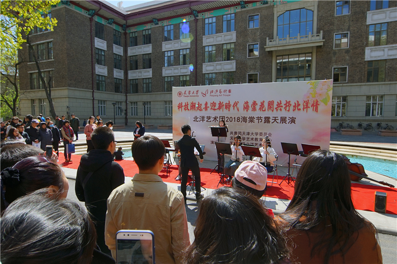 校园里,师生书画作品展及户外书画互动、天大学子讲解“天大经典”、北洋艺术团特色文艺汇演、科普日活动、师生诵读会、传统文化展示、体育竞技与汇演等活动精彩纷呈。学生们通过传统文化、文艺表演、绿色公益、智慧科技等活动展才艺、秀创意、同欢乐。青春学子与缤纷海棠相得益彰,共同“绽放”。