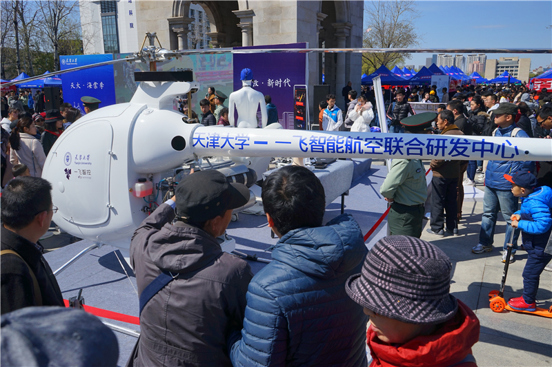 在北洋广场,“智创未来——智能科技体验”活动吸引着游人驻足观看。“天大智造”的脑控实时人机交互系统、“海燕”水下滑翔机、智控无人机、变胞机器人、智能汽车等高科技成果实物一一亮相,新利18网址登录
