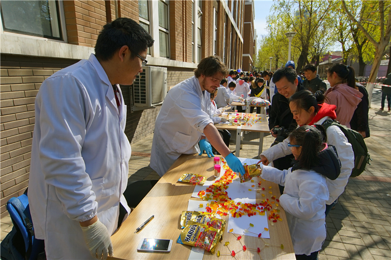 当日,第二届美国化学会化学嘉年华在天大举办。活动设计了趣味化学循环演示,参加者通过亲自动手体验紫甘蓝检测水质、脂肪的溶解、光敏分子、气球爆破等多个小实验,发现生活中的化学知识,激发探索科学的好奇心。