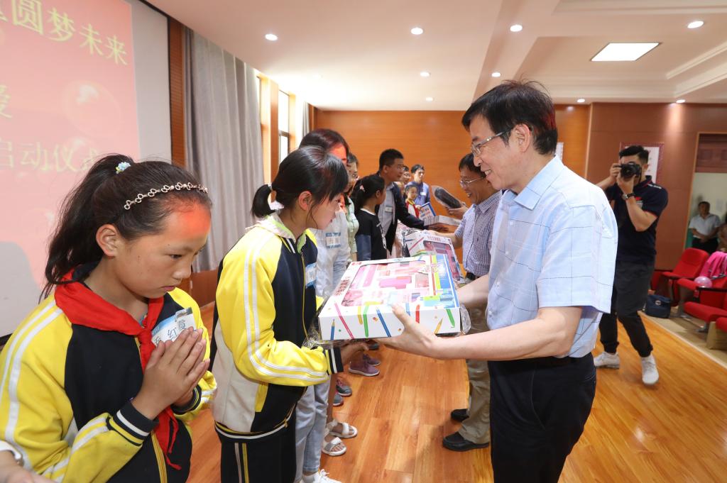 走进“梦想教室”,李家俊代表学校向同学们赠送了由崭新的书包、人文书籍和文具组成的“梦想加油包”,他鼓励同学们培养对科学的兴趣,争做“追梦人”,利用好“梦想教室”这一桥梁,将天大师生当作良师益友,未来也要成为担当民族复兴大任的栋梁!