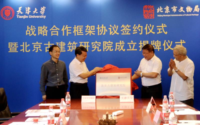 本站讯(记者焦德芳 摄影唐蒙)9月15日,北京市文物局与天津大学签署战略合作框架协议,北京古建筑研究院在天津大学揭牌成立。