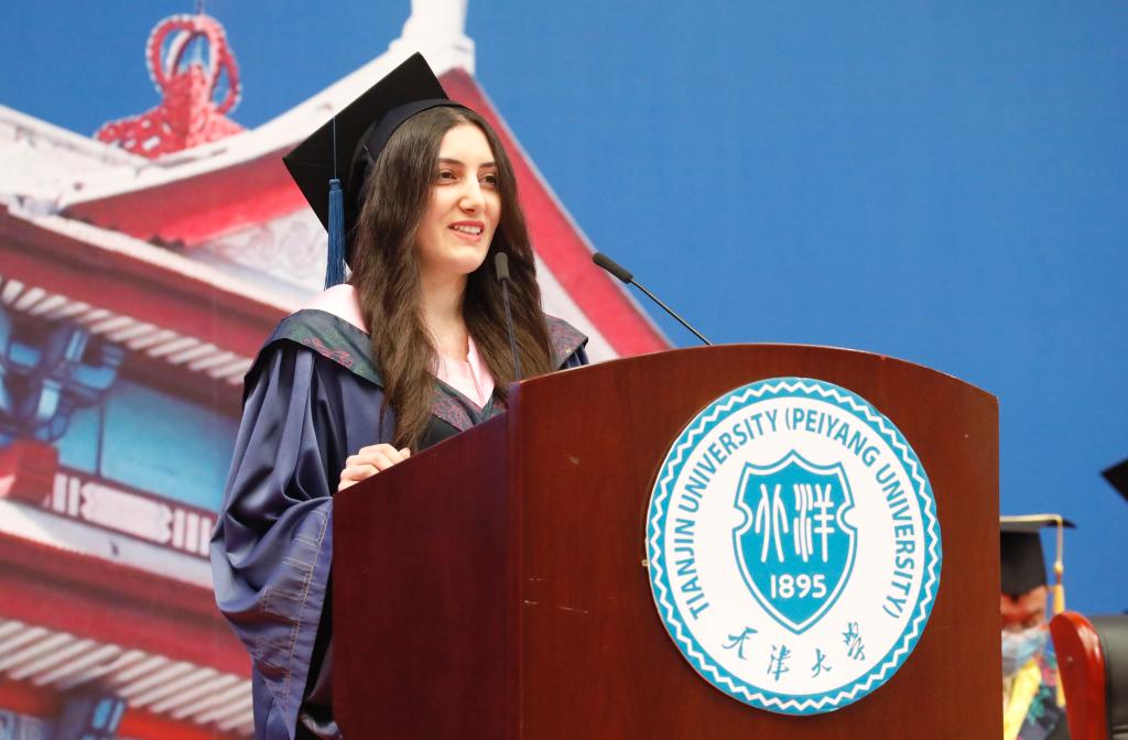 来自亚美尼亚的留学生薛云作为留学代表,与大家共同分享了她在天大的成长故事和学习经历。她说:“在天津大学度过的时光是美好而珍贵的。天津大学为留学生提供了学习和成长的平台,使我们掌握新的知识,增加对中国文化的理解。”薛云表示,一定会把中国故事、把博大精深的中国文化讲给朋友、家人听,会永远记住与中国人民的友好情感,一定把和中国朋友们结下的深厚友谊传递下去。