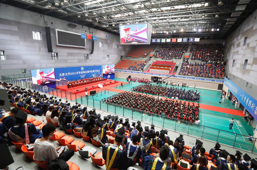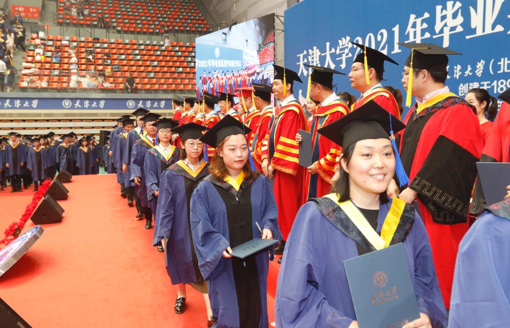 本站讯(通讯员 记者 刘延俊 摄影 唐蒙)天津大学2021年研究生毕业典礼暨学位授予仪式7月2日在卫津路校区体育馆隆重举行。423位博士生,2589位硕士生经学位评定委员会审议通过,顺利取得学位。校领导、校友和教师代表现场为毕业生们送上殷殷祝福和拳拳嘱托。