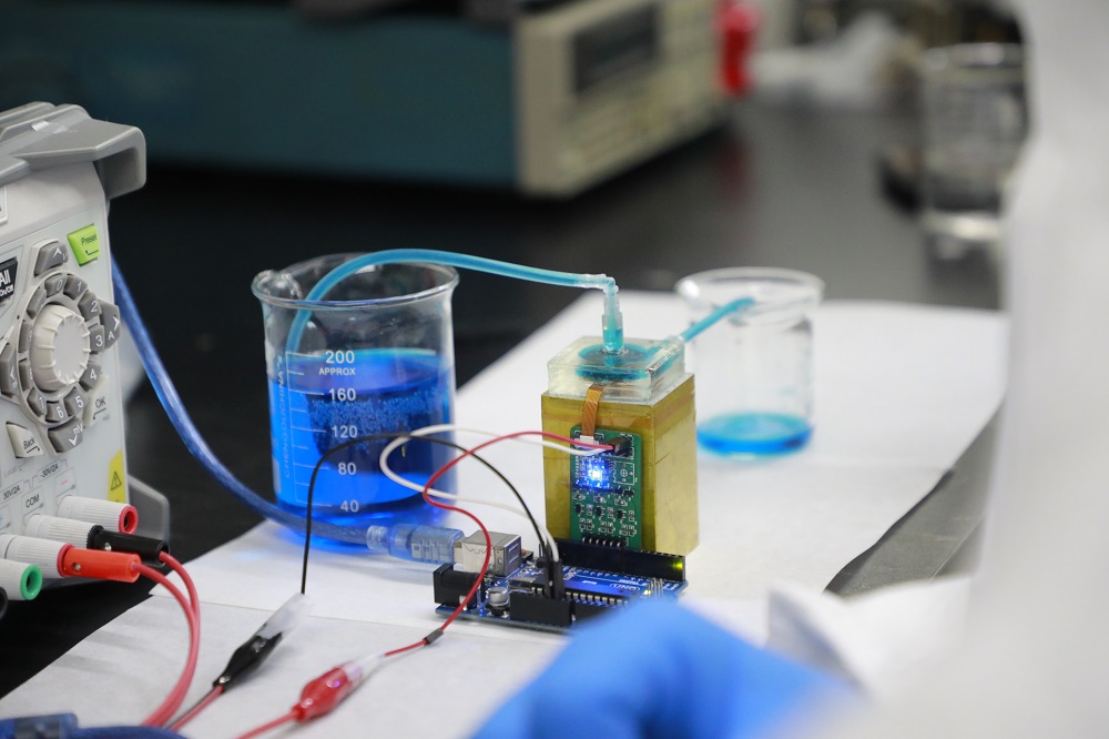 “整个系统的功耗在4W以内,长时间的流体输运后,整个微泵的温度不超过37°C,不会对人体组织造成损伤,其柔性的结构可适应人体的运动进行一定程度的形变,且在不同的运行角度上均具有泵流能力,更符合人体工学的柔性材料和结构使得该泵更适合长期的穿戴使用,这验证了柔性材料和电路替代传统刚性和旋转部件的可能性,还展现了在全柔性人造器官领域和大型诊疗设备的可穿戴化的应用潜力,将给广大患者带来更大的福祉。” 周明行说。
