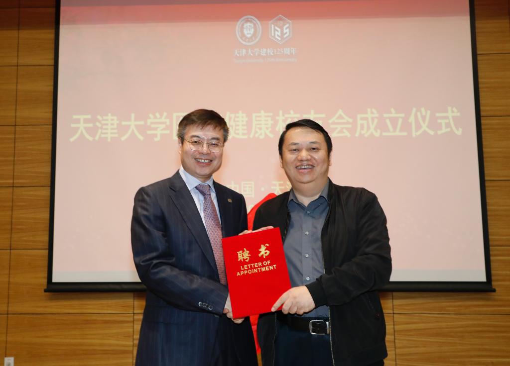 大会还举行了天津大学医疗健康校友会成立仪式,金东寒代表校友总会向医疗健康校友会会长刘毅颁发聘书并与其共同揭牌。学校医学部党委书记李振宇介绍了天大医学发展情况及医疗健康校友会成立背景。