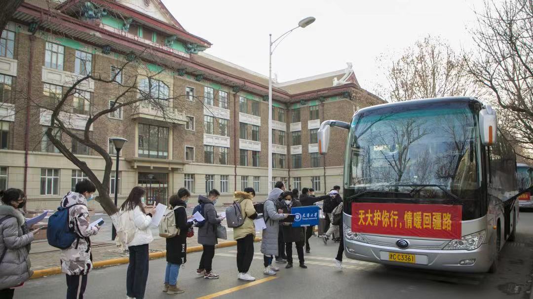 天津鏖战奥密克戎已经两周多。春节将至,离校返乡,回家过年是许多学子的期盼。受疫情影响,天津飞往新疆的飞机全面停飞,天津大学得知后立即行动,发动校友寻找资源,联系天津市工作专班寻求支持,联络各家航空公司多方协调,最终以经济实惠的价格包机送同学们回疆。并且安排教师带队,护送学子返乡,解决了当前学生急难愁盼的问题。