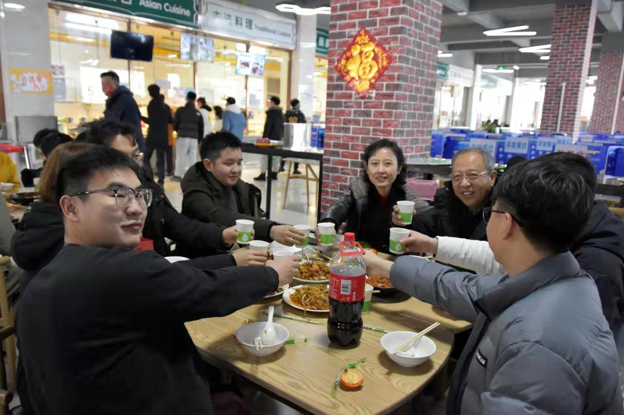 当天在卫津路校区,王树新、元英进、曲凯、郑刚、张力新、刘宁等校领导还来到生命科学学院、地科院、分子+研究院、微电子学院、药学院、海洋学院、法学院等,给留校学生发放新春大礼包、与家长连线拜年、和同学们一起写春联贴福字、发年货包饺子……前一天,郑刚还代表学校领导与国际教育学院师生举行午餐会,向来自十余个国家的留学生代表致以新春佳节的祝福。
