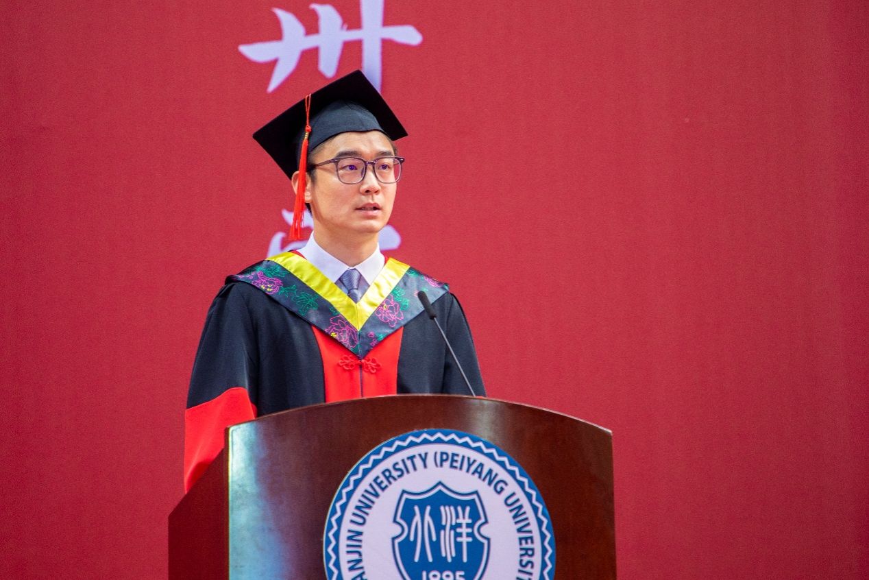 “亲爱的同学们,几年前你们的录取通知书里提到花堤霭霭,北运滔滔,那是地理的北洋园。今天,请大家带上老师们的殷殷嘱托,带上求学期间潜移默化形成的‘实事求是’的天大品格,踏上学习和就业的新征程。”天津大学法学院院长孙佑海作为教师代表为毕业生分享了他关于人生经验的三点思考:学习党、忠于党、爱惜党。“明朝诸君入山海,莫忘母校海棠仍为你而开。”