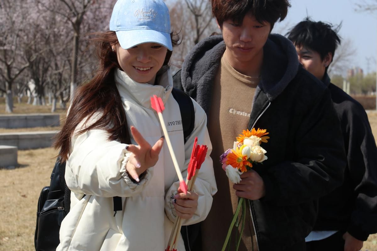 恰逢春分,春意萌动,以鲜花装点的“TJU”幸福主题背景板绽放出一片盎然生机。现场设置“鲜花派送”、“掷壶挑战”、“打卡留念”环节,参与者可在展板上书写心愿,领取鲜花,并挑战雅趣活动。活动持续约一个小时,近千名师生参与其中,同沐芬芳,拥抱幸福,分享幸福,传递幸福,携手营造“幸福感”充盈的校园氛围。