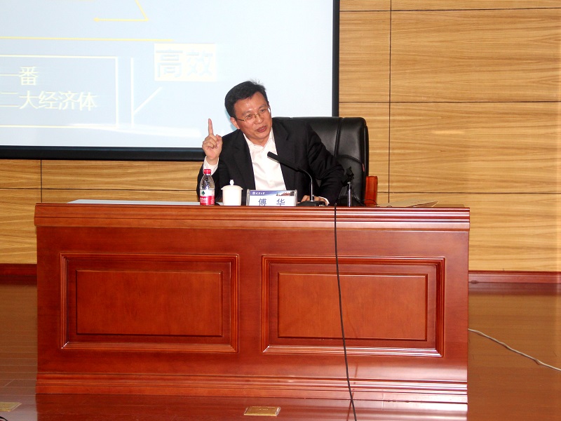 傅华指出,意识形态就是维系支撑统治执政的思想体系,凡是用以证明统治执政是合法的、是有效的思想体系都属于我们的意识形态。中国共产党的意识形态具有包容、高效和开放的特点。当前,我们党的意识形态领域形势总体向上向好,但斗争依然激烈。意识形态斗争表面上是价值之争、制度之争,实质上关乎国家利益和未来,是发展之争、生存权之争。傅华提出,领导干部都应该重视意识形态建设工作,以软实力带动硬实力的建设;高校里的每一名教职员工都应具备宣传思想意识,牢牢把握意识形态工作主导权:要以“中国梦”教育为核心,巩固理想信念,增强民族自信;要以文化建设为抓手,凝魂聚气、固本强基;要树立“大宣传”理念,共建美丽精神家园。