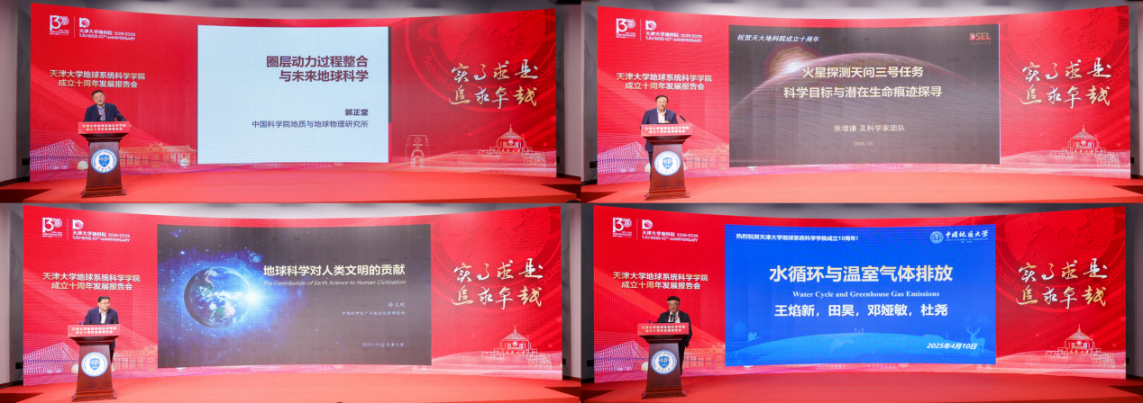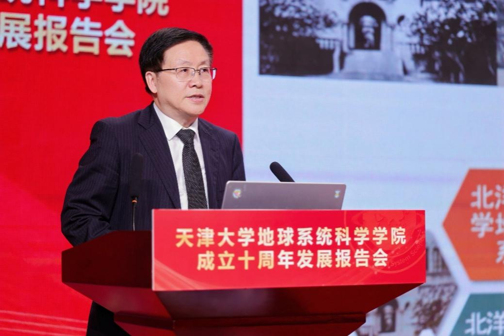 天津市教育委员会党组书记、主任荆洪阳在致辞中指出,地科院的十年发展历程,是新时代高校勇担使命、勇攀高峰的精彩缩影,并希望学院在“勇当科技自立自强的排头兵、培育新时代地学领军者、构筑地球系统科学新高地”三个方面再创佳绩。