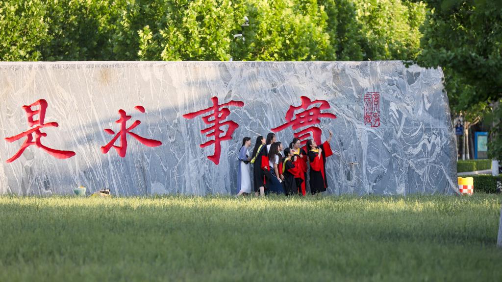 毕业生在校训石前合影