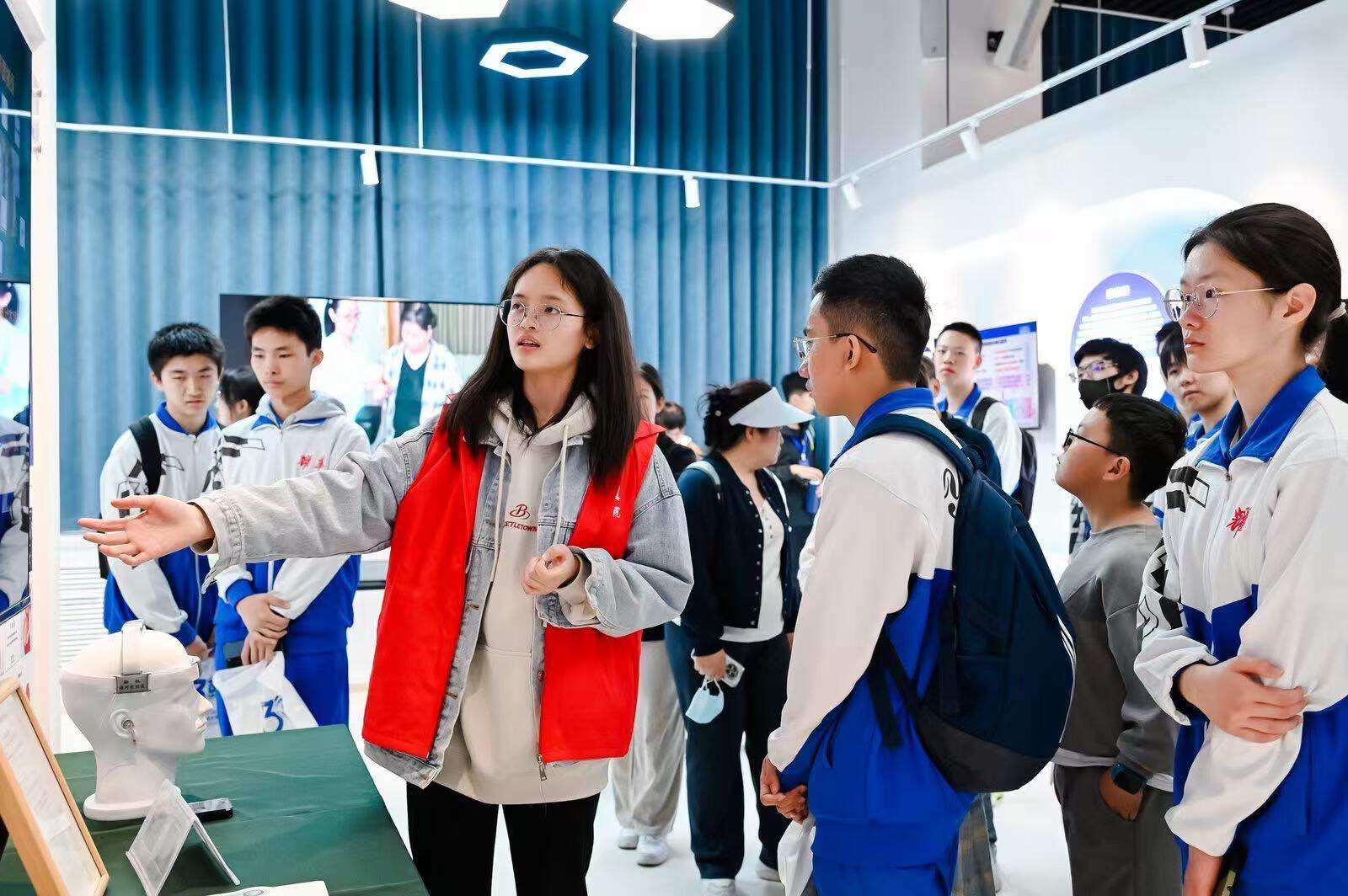 穿戴式脑控外肢体手指机器人“灵犀指”、片上脑-机接口“长在芯片上的大脑”、外骨骼机器人系统“神工神甲”等一系列前沿科技成果,都让游客们惊叹不已。讲解员耐心地为小朋友们讲解展品原理、回答他们天马行空的问题;一些科技爱好者迫不及待地拿出手机,从各个角度拍摄展品,不时询问技术细节。大家或是凑近展品,试图看明其中隐藏的科技奥秘;或是轻声交流对科技发展的感慨,话语中充满对未来医学的憧憬与期待。游客们在惊叹科技魅力的同时,也对医学科学有了更深刻的认知,科普的种子深深扎根在每个人心中。