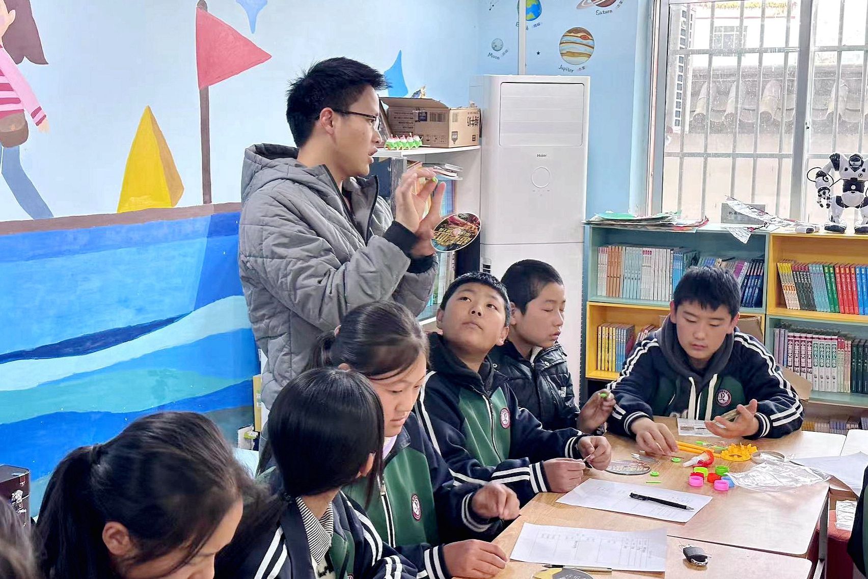 研究生支教团成员为宕昌学生讲解水动力小车制作流程