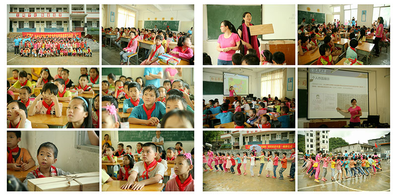 “看到了一群衣着质朴、身材瘦小、眸子清澈的大山里的孩子们。他们簇拥着用好奇的眼神打量你,仿佛透过你的眼睛可以看到大山外面的世界。当他们接过书包和文具时,脸上烂灿的微笑直击你的内心深处最柔软的部分,心都跟着融化了。当他们望着投影出的天津的照片,也就是他们眼中的大城市的高楼大厦,这些原本清澈的一双双眼睛仿佛闪烁着明亮的光。”